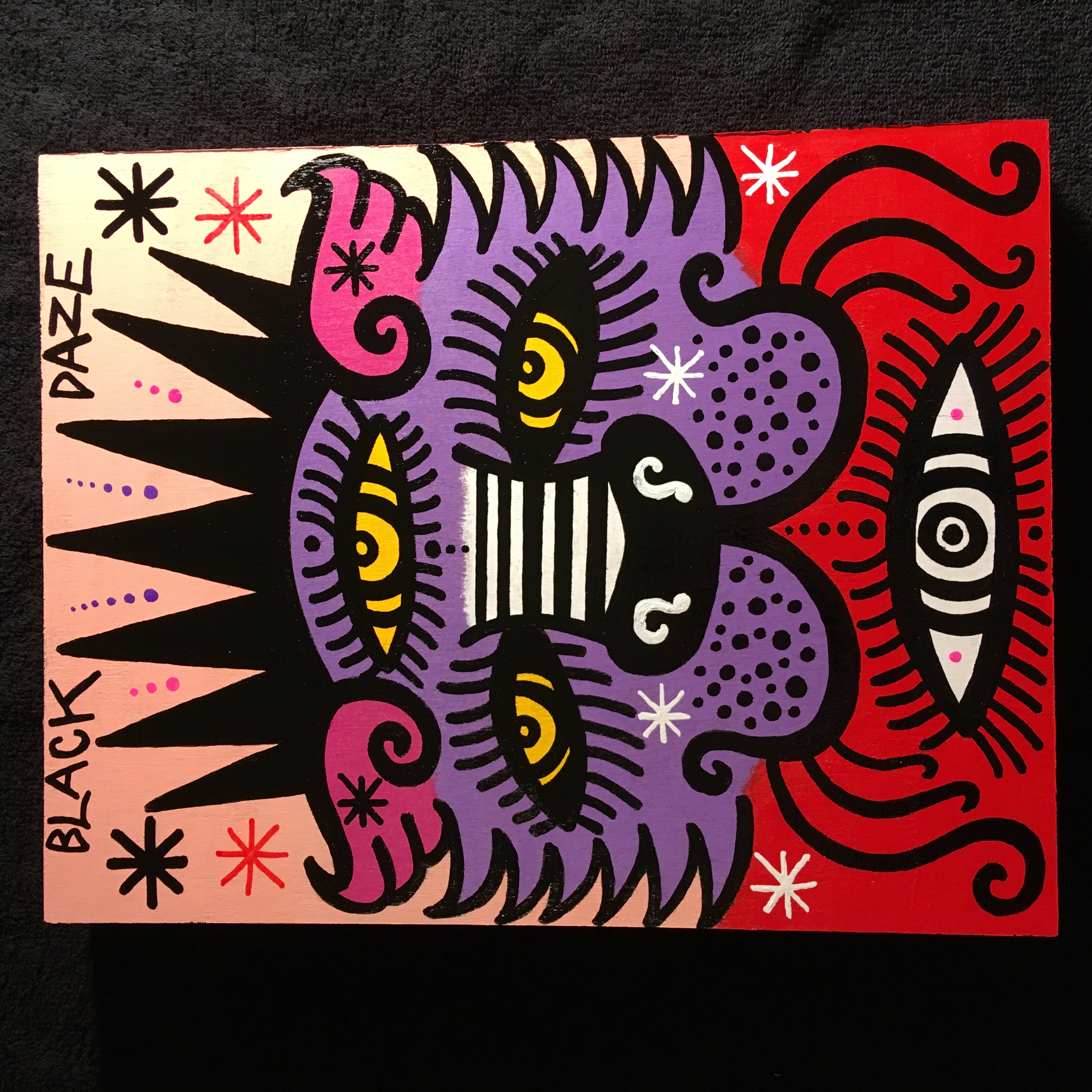 ORIGINAL PAINTING. MARKER & ACRYLIC ON WOOD PANEL. 11 X 14 INCHES. WIRED & READY TO HANG.