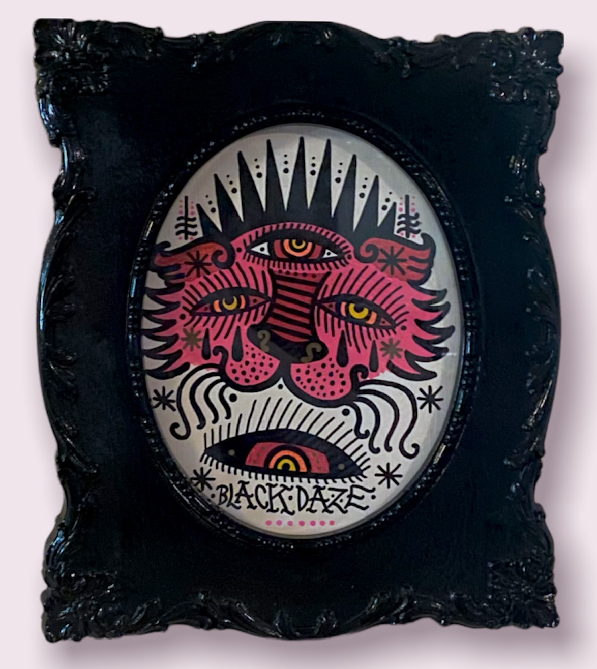 MARKER ON ART BOARD. FRAMED. 11 X 14 INCHES. COMES WITH STICKERS.
