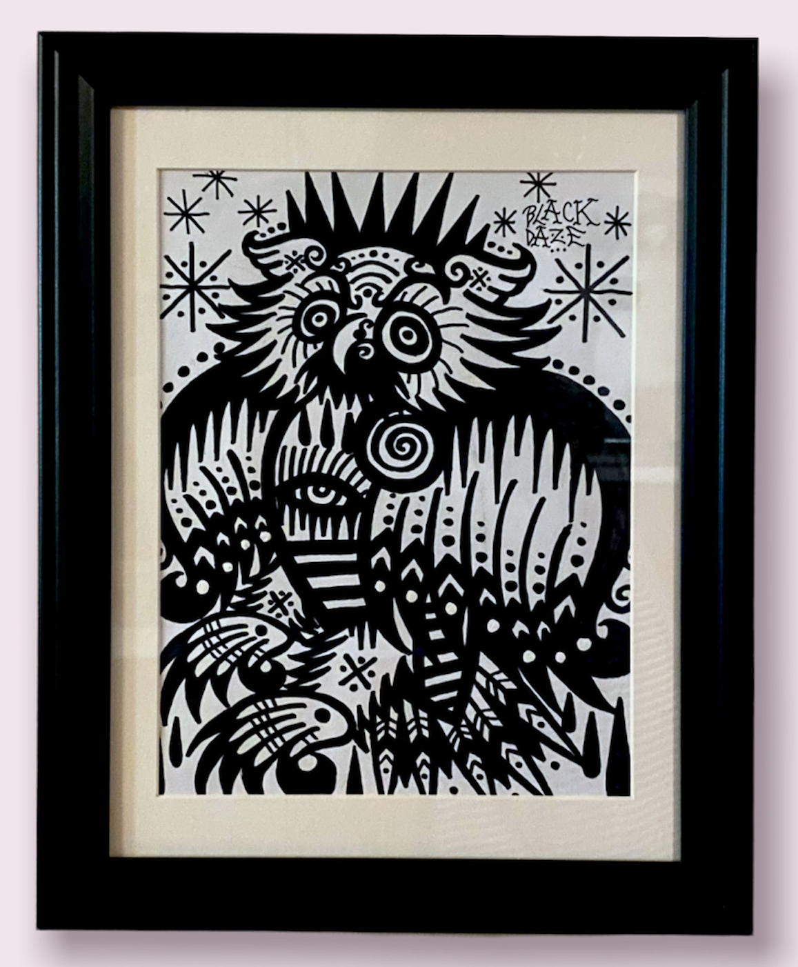 MARKER ON PAPER. FRAMED. 12 X 15 INCHES. COMES WITH STICKERS.