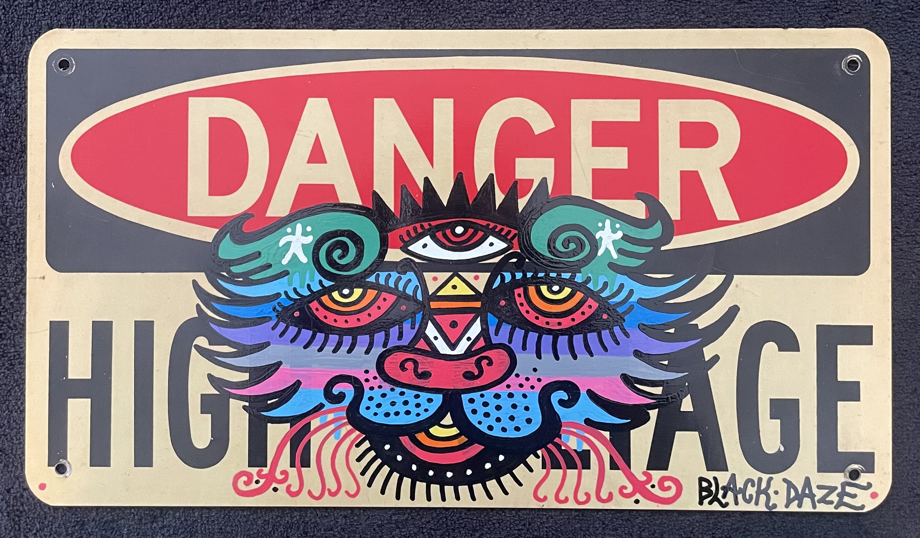 MARKER ON DANGER SIGN. 10 X 18 INCHES. HOLES FOR EASY HANGING. COMES WITH STICKERS.