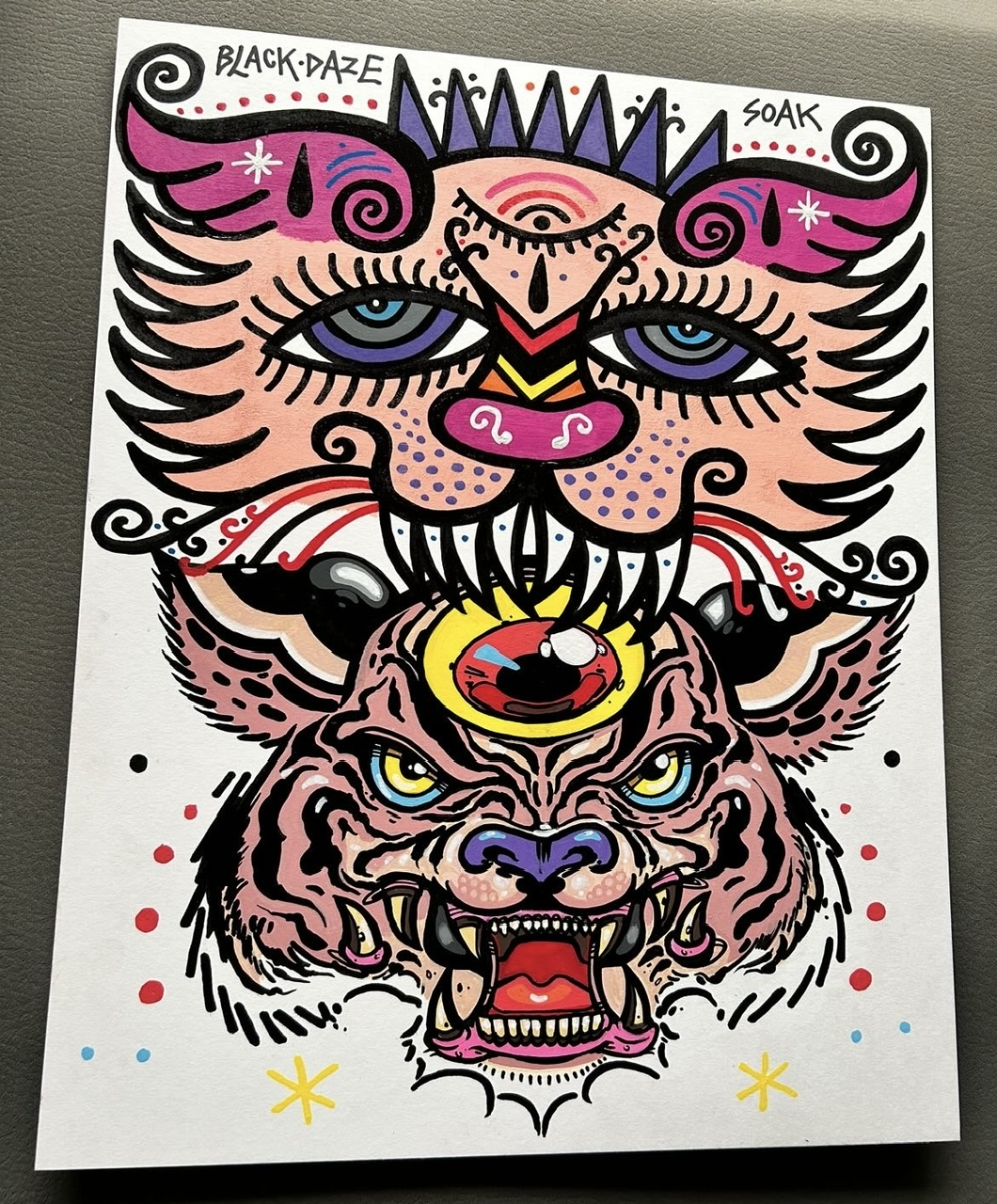 SOAK & BLACK DAZE COLLAB ORIGINAL. ACRYLIC & MARKER ON ART BOARD. 16 X 20 INCHES. HAND SIGNED. COMES WITH STICKER PACK.